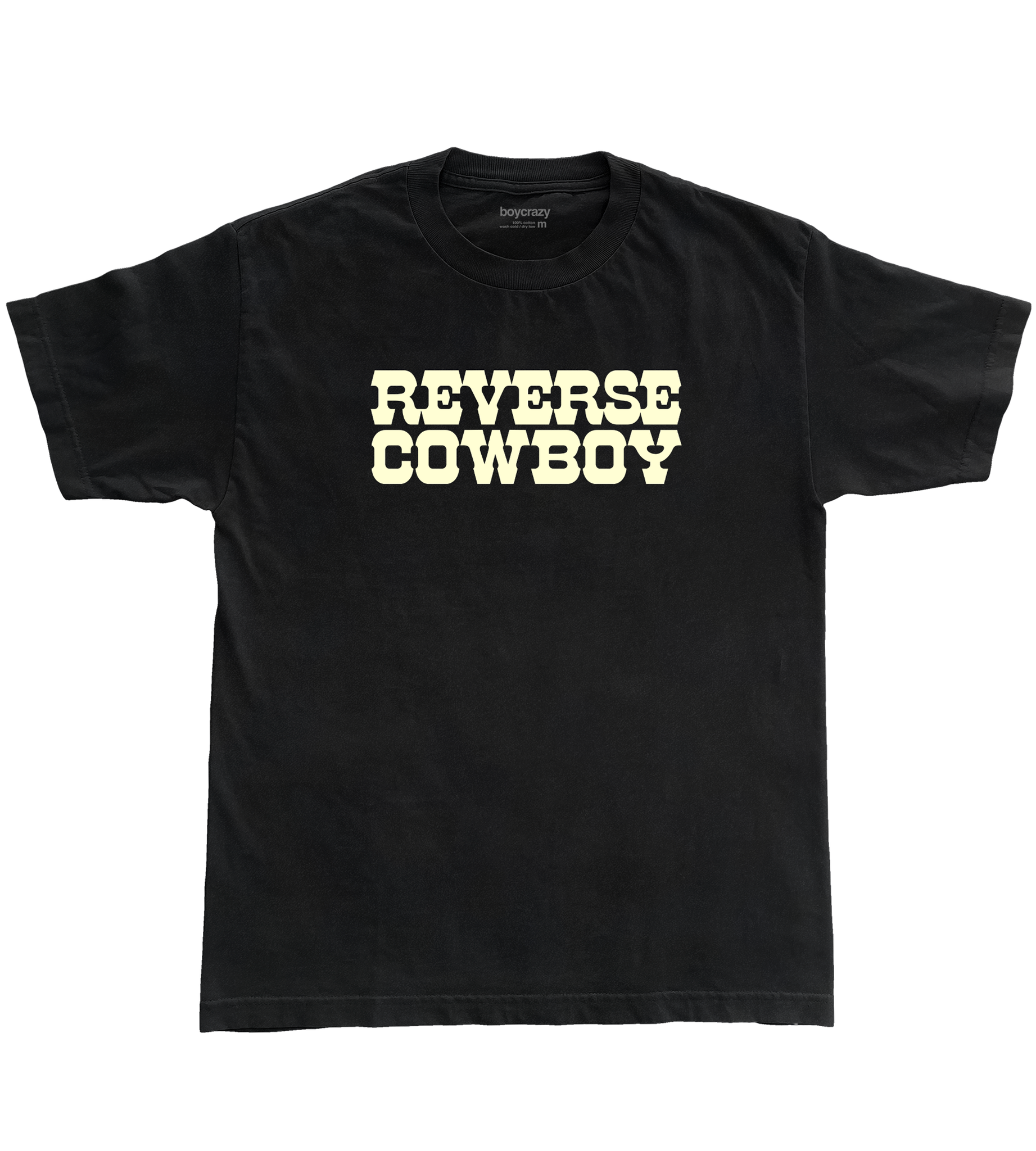 Screen printed graphic on black tee.
